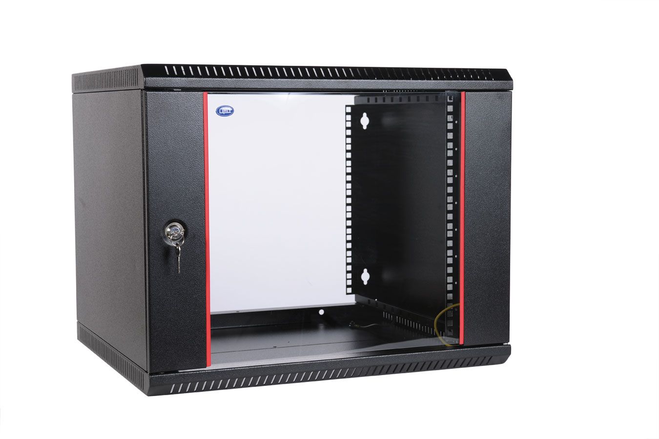 Шкаф настенный 19-дюймовый (19"), 6U, 367x600х450мм, стеклянная дверь, цвет черный (RAL 9004) (разобранный) WRline WR-TW-0645-GP-RAL9004