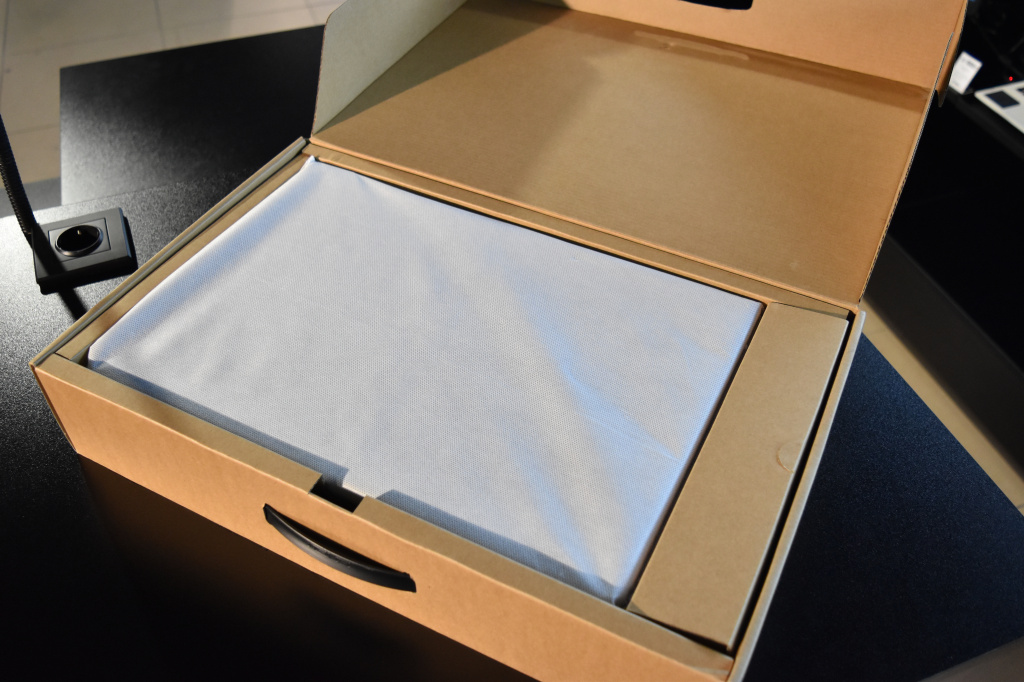 Устройство поставляется в картонной коробке с удобной ручкой для переноски. Комплектация весьма стандартная для ноутбуков и не преподносит больших сюрпризов, поэтому мы просто перечислим, что геймер обнаружит внутри упаковки, помимо ноутбука: