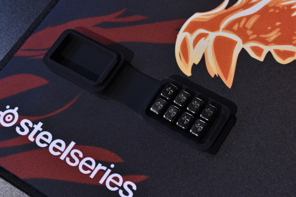 Одной из интересных особенностей Rival 650, кроме своей конструкции двойного сенсора, является инновационная система регулировки веса. Чем же она так хороша? Для того, чтобы ответить на данный вопрос стоит буквально на секунду углубиться в историю. Как правило, раньше регулировка веса в мышках была условная. То есть игрок обычно помещал специальные грузики внутрь мышки, где для них были предусмотрены специальное место, которое как правило находилось на дне устройства. Но в Rival 650, SteelSeries решили пойти дальше. Вместо привычной схемы, геймер теперь сам выбирает и равномерно распределяет вес мышки с помощью грузиков. В Rival 650 предусмотрено четыре отдельных слота с каждой стороны девайса (!), которые позволяют установить до восьми грузиков весом 4 грамма. Проблема распределения веса внутри мышки, по сути, решена вот таким вот простым, но очень эффективным решением, которое должно удовлетворить любого, кто хочет идеально настроить свою мышку под себя.