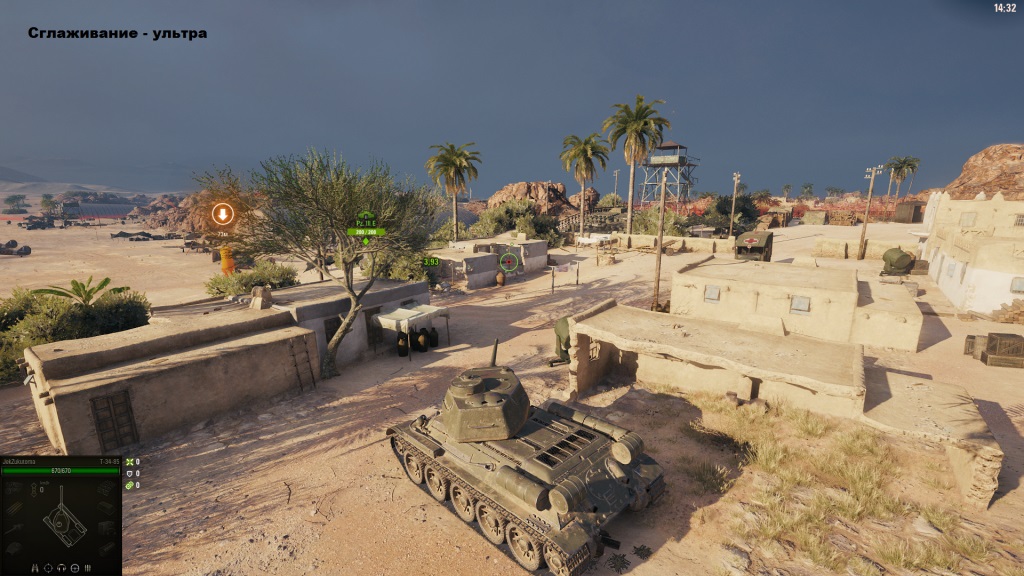 Параметр «сглаживание» делает более гладкими края объектов и убирает различные «зазубренности» с них. Как правило, сглаживание довольно «прожорливая» к ресурсам компьютера графическая настройка, но в World of Tanks она не так критично влияет на производительность, поэтому даже на относительно слабых ПК можно выставить минимальный или даже средний показатель, но если fps держится в районе ниже 30 кадров, то наилучшим решением для повышения производительности будет отключение сглаживания.