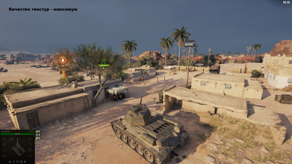 «Качество текстур» - это, наверное, самый основной параметр, который достаточно сильно влияет на производительность, а также на качество и детализацию изображения в World of Tanks, включая все трехмерные объекты в игре. Чем выше качество текстур - тем четче и детальней выглядит картинка. Этот параметр напрямую зависит от объема встроенной видеопамяти графического адаптера.
